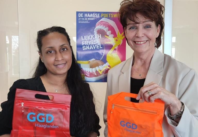 Vandaag heeft Pallavi Moelchand, thuiszorgmedewerker van WoonZorgcentra Haaglanden (WZH) van Anita Koolwijk, functionaris Gezondheidsbevordering van GGD Haaglanden de e-learning ‘De oudere mond gezond’ ontvangen tijdens een feestelijke bijeenkomst.